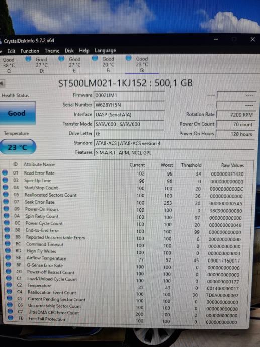 Disk ispravan, stoji već neko vrijeme nekorišten. 7200 RPM.