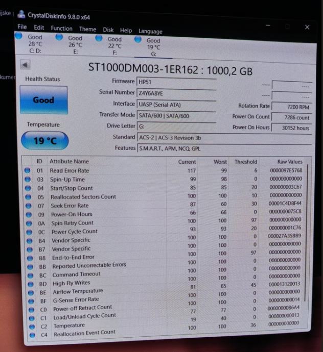 Ispravan te prema CrstalyDiskInfo ima "Good" zdravlje