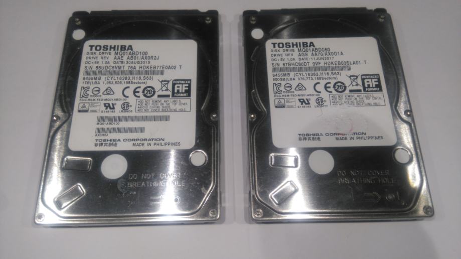 Toshiba HDD 2.5 (1TB cijena 20e i 500GB cijena 15e) ispravni bez bad sektora.Moze zamjena za SSD nvme 256/500GB.Mob:095/5818-231