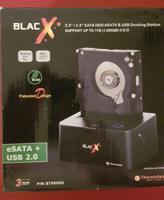 Thermaltake BlacX USB priključna stanica može jednostavno povezati sve 2,5” i 3,5” SATA tvrde diskove. Koristeći njihov jedinstveni patentirani dizajn (koji podržava i eSATA i USB 2.0 prijenos), možete sigurno odvojiti SATA tvrde diskove bez ikakvog oštećenja. Osim toga, ovaj iznimno kompaktan dizajn BlacX priključne stanice će maksimalno povećati rasipanje topline i ispuh.