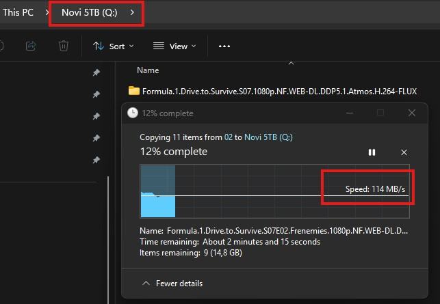 Bzina kopiranja je 130 MB/s toliko je najbrže kopirao veliki file preko usb 3.2 sučelja.