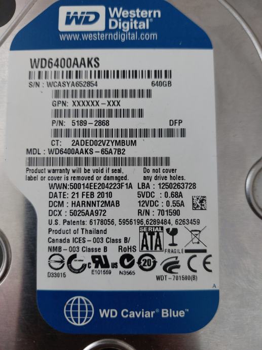 Western Digital 640GB SATA Hard Disk u odličnom stanju, nema bad sektora napravljen test.!