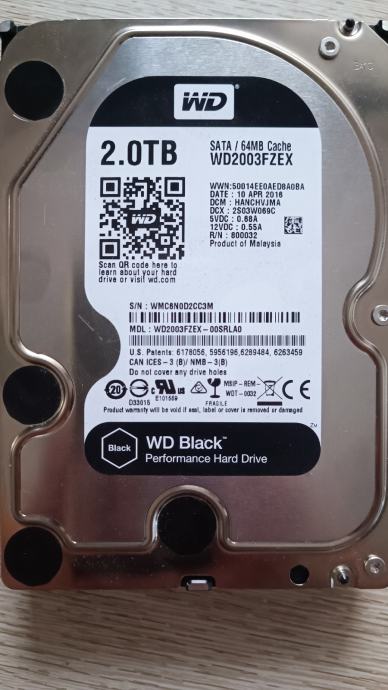 WD Black 3,5" 2TB 64MB cache. Disk nems grešaka, korišten za pohranjivanje filmova i serija u NAS-u.