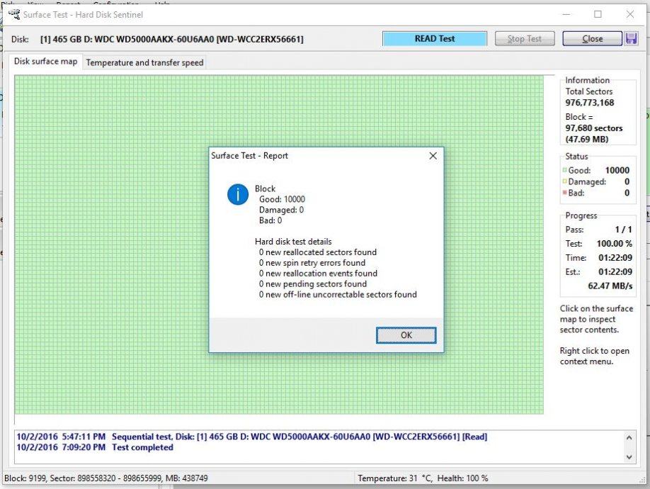 Stanje: ispravan, provjeren u HD Tuneu i Sentinelu te je 100% ispravan po pitanju performansi, zdravlja te bad sektora kao što je vidljivo iz priloženih slika. Osobna garancija od 7 dana.