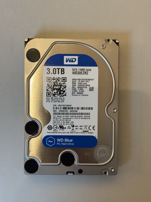 Prodajem WD Blue HDD 3TB SATA 3.5". Disk je testiran i ispravan.