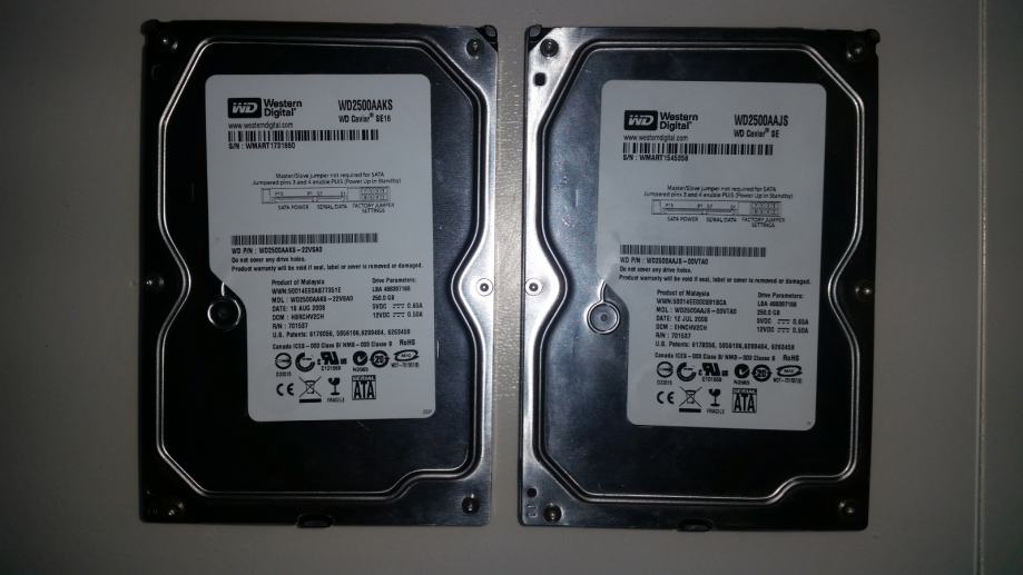 Prodajem 2 x Hard disk 250GB 3.5". Hard diskovi su potpuno ispravni. Uz njih prodajem i jednu ladicu.