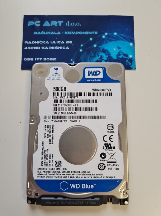Western Digital WD BLUE 500 GB (WD5000LPVX) 2.5" HDD - Račun / R1 / Jamstvo