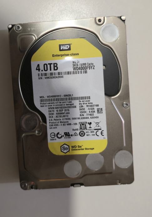 Prodajem SATA HDD Western Digtal SE enterprise-class 4.0 TB ( datacenter storage) specijalno namijenjen serverima i zahtjevnim okruženjima.
