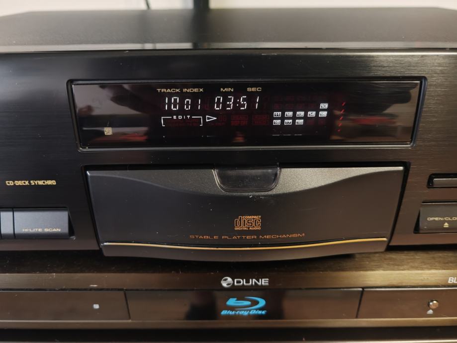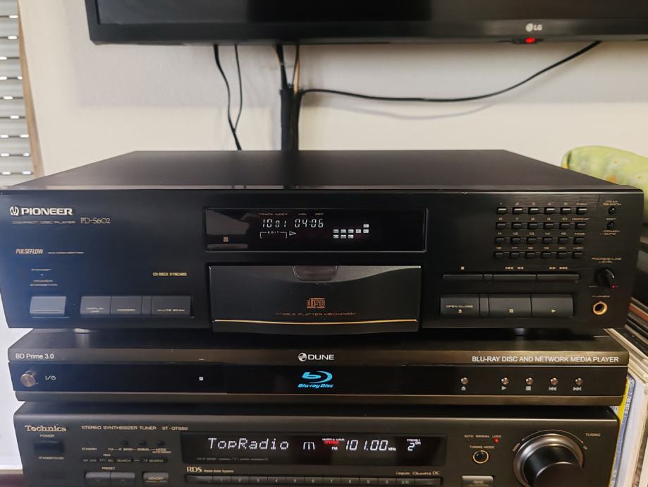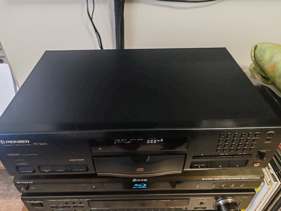 Tehnički ispravan i solidno uščuvan CD player Pioneer s daljinskim upravljačem. Uredno reproducira CD-R medije. Stable platter, varijabilni i fiksni analogni izlaz, optički digitalni izlaz.