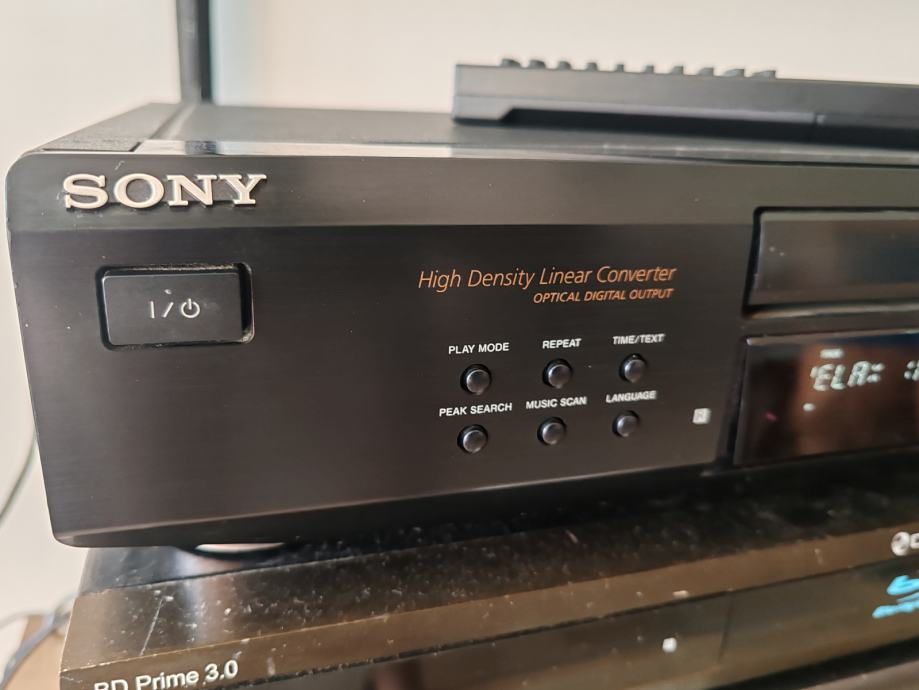 Tehnički ispravan i vrlo uščuvan CD player Sony s daljinskim upravljačem. Uredno reproducira CD-R medije, CD-TEXT, optički digitalni izlaz.