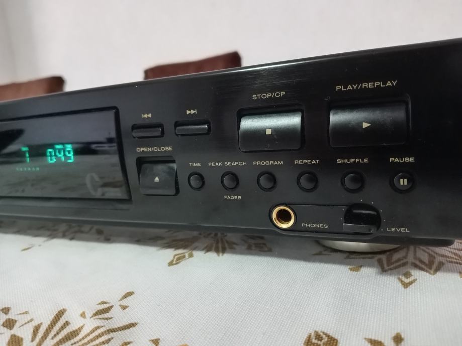 Prodajem rabljeni Marantz CD-46 CD player, klasični hi-fi uređaj crne boje koji je dio Marantzove poznate linije komponenti. Prednji panel sadrži ladicu za CD, fluorescenstni displej, te tipke za upravljanje reprodukcijom uključujući Play/Replay, Stop, Pause, Shuffle, Repeat i Program funkcije. Tu su i Peak Search, Fader i Time opcije, a uređaj dolazi s priključkom za slušalice s regulacijom glasnoće na prednjem panelu.