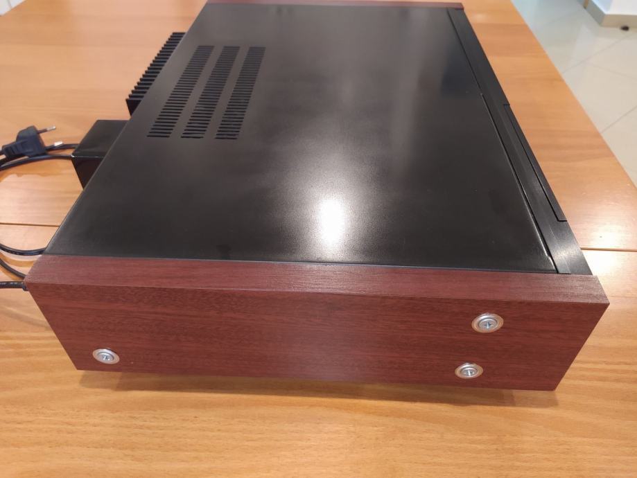 An early front loading hi-fi stereo Compact Disc player with a digital display housed in a black or champagne gold metal case. Philips CDM-1 laser transport mechanism, 2 x TDA1540D 14 bit DACs and a SAA7030 digital filter with 4 times oversampling.