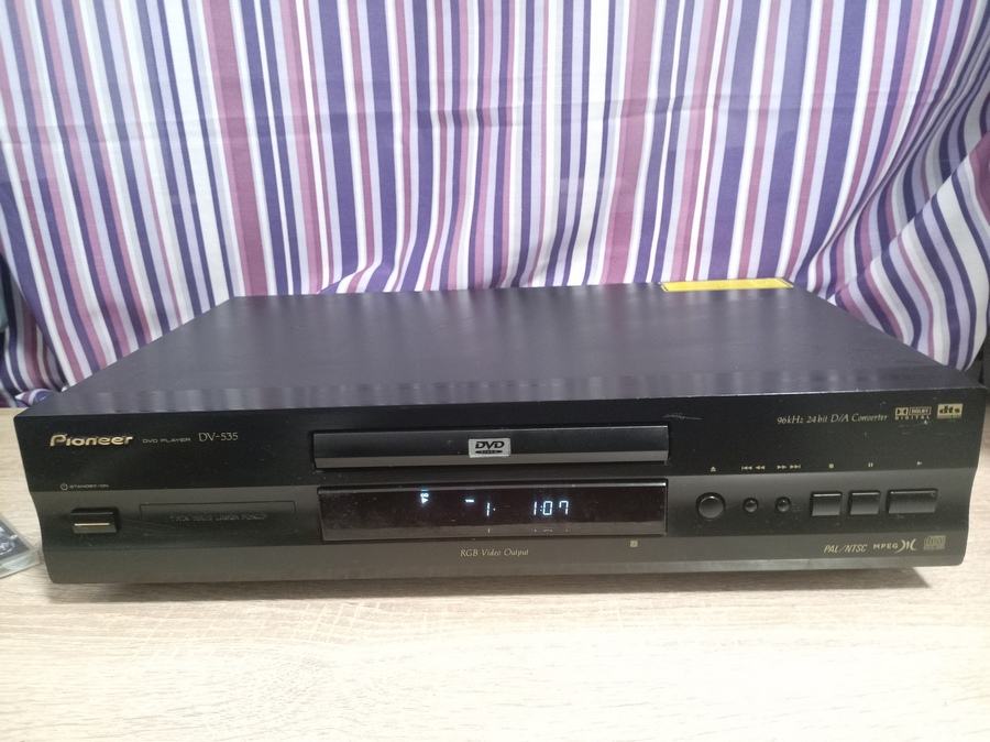 Prodajem ispravan , solidno očuvan Pioneer DV 535 , CD DVD player ispravan , cd , dvd , u formatu standardnog CD playera dimenzije 42x10x28 cm , bez daljinskog , dts , rgb video aut , optical out . tel : 099 4722848