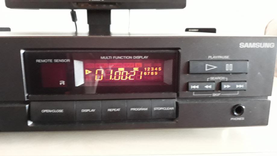 Jedan od prvih Samsungovih CD playera (1991), očuvan, radi ispravno, osim što se ladica malo teže otvara i zatvara.
