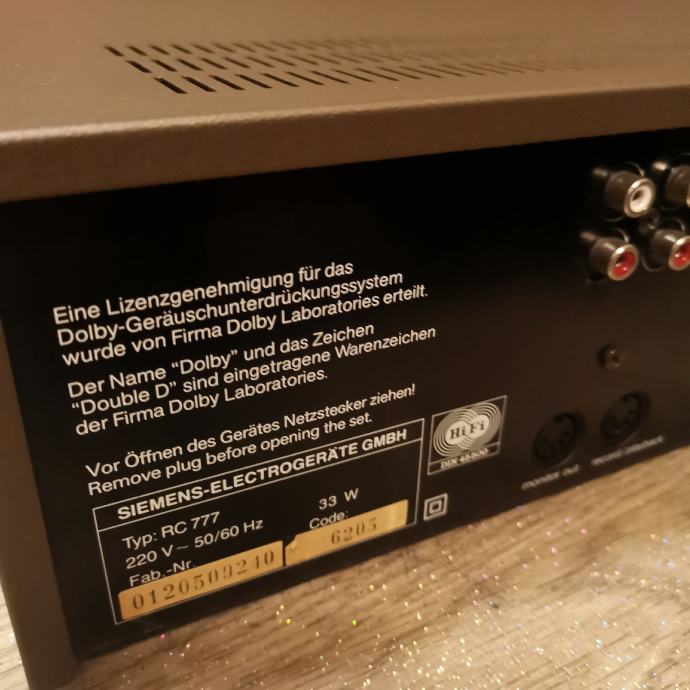 Prodajem 3 head vintage deck iz 1979 godine SIEMENS RC-777 u vrhunskom stanju. Uređaj je komplet servisiran, promjenjene gumice, pitch roler te očišćen i podmazan mehanizam. Inace uređaj ima jako malo radnih sati,glave su kao nove. Na uređaju je jedina prerada chinc izlazi/ulazi. Zvuk i snimka decka vrhunska. Moguća proba prije kupnje te dostava do Zagreba. Cijena 1000 kn. Imam i test snimku snimanja sa servisa...