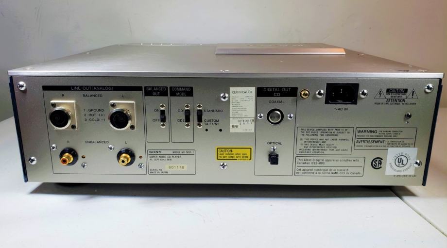 U ponudi je sjajan kolekcionarski primjerak i sigurno jedan od najpoželjnijih Sony CD playera ikad , model SCD-1 . U izuzetno je dobrom stanju , vrlo malo korišten . Interno je podešen na EU napon od 220 - 240 V . Dolazi s kompletnim priborom , daljinskim upravljačem i u originalnoj ambalaži .
