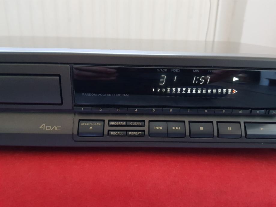 Na prodaju je technics cd player. Radi i svira odlično . Dolazi s kablom za napajanje i činč, bez daljinskog i ostale opreme. Dobro očuvanom stanju. Tehnički podaci dostupni na webu ukoliko na slikama nema ono što vas točno zanima. Cijena je fixna i zamjene me ne zanimaju. Prodajem kako navedeno i ukoliko vam ne odgovara bilo što molim trazite dalje. Slanje moguće jedino uz prethodnu.uplatu na račun . Na SMS poruke ne odgovaram. Upite molim tu preko njuškala i odgovaram u razumnom roku.