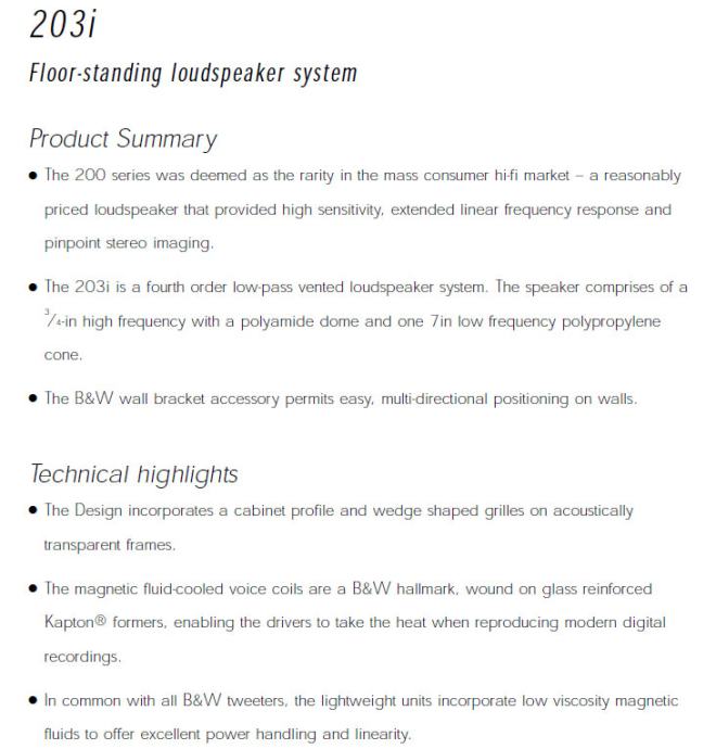 B&W 203i zvučnici