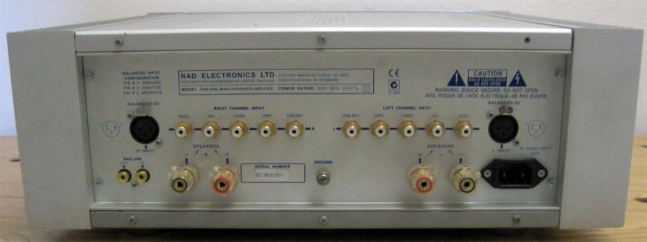 Nekad NAD-ovo high end integrirano pojačalo (kopija Gryphon Tabu-a)., stanje - 7.5 / 10 (pojačalo ima nekoliko ogrebotina, i jedno manje udubljenje koje je nastalo pri padu cd-playera na njega). Pojačalo je bez kutije, no postoji zamjenska.
