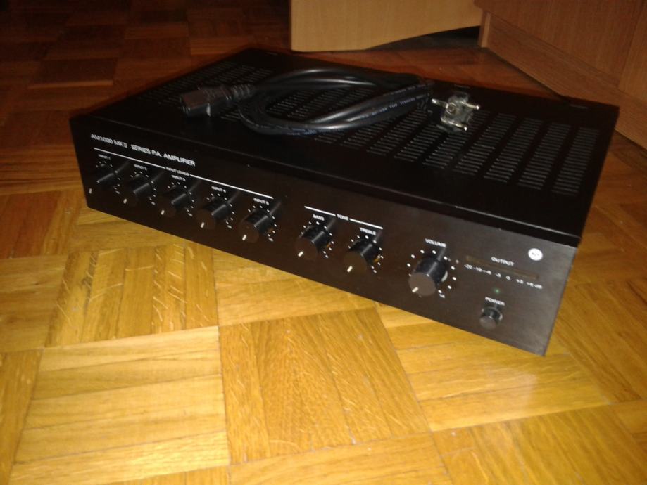 Prodajem profesionalno 5 kanalno pojačalo s dodanim 6.3 ulazom koji se kontrolira na Input 5. Odlican za ugostiteljske objekte, trgovine, karaoke posto ima 4 ulaza za mikrofone. Solidno izrađen cvrst i masivan super kao prijenosni p.a. snage 120W.