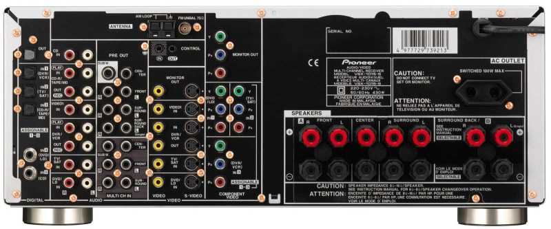 Output Connections 1 x optical, 1 x AV, 1 x component, 2 x S-Video, pre-amp (all 7.1 ch)