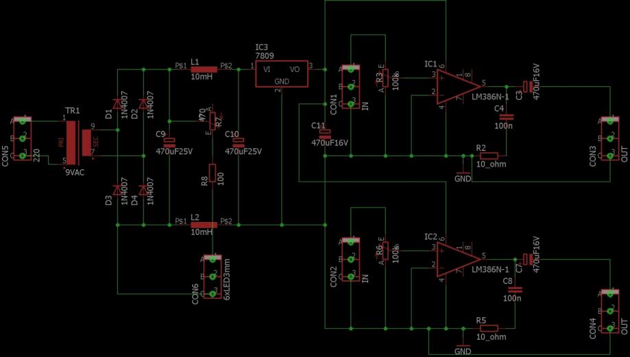 pojačalo za slušalice rade na isfiltriranom naponu od 9V,koristi pojačalo integrirac