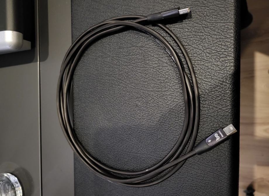 Prodajem rabljeni AudioQuest Coffee Thunderbolt kabel za povezivanje audio uređaja visoke kvalitete. Kabel je u dobrom stanju s minimalnim znakovima korištenja, idealan za audiophile koji traže kvalitetan zvučni prijenos. Crni dizajn s prepoznatljivim AudioQuest oznakama osigurava pouzdanu vezu između vaših Hi-Fi komponenti.