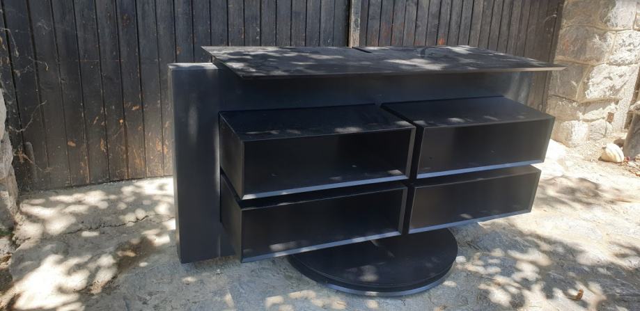 Avantgarde hifi/TV polica, nekada koštala cca 3000€, oko 35 kg teška, na kotačima/valjcima, okreče se i oko osi, moguća zamjena uz doplatu