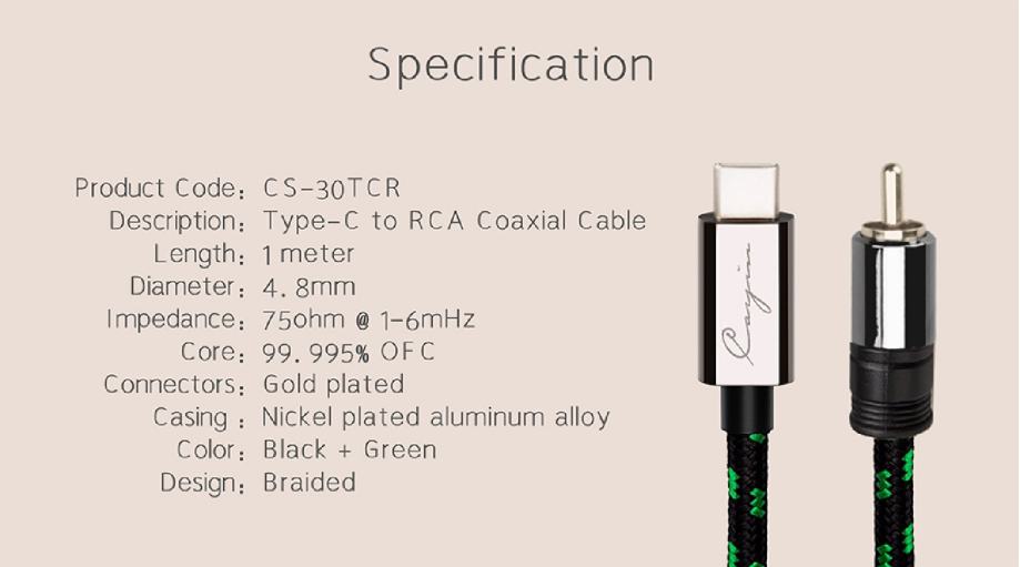 Cayin CS-30TCR USB Type-C to RCA Coaxial Cable