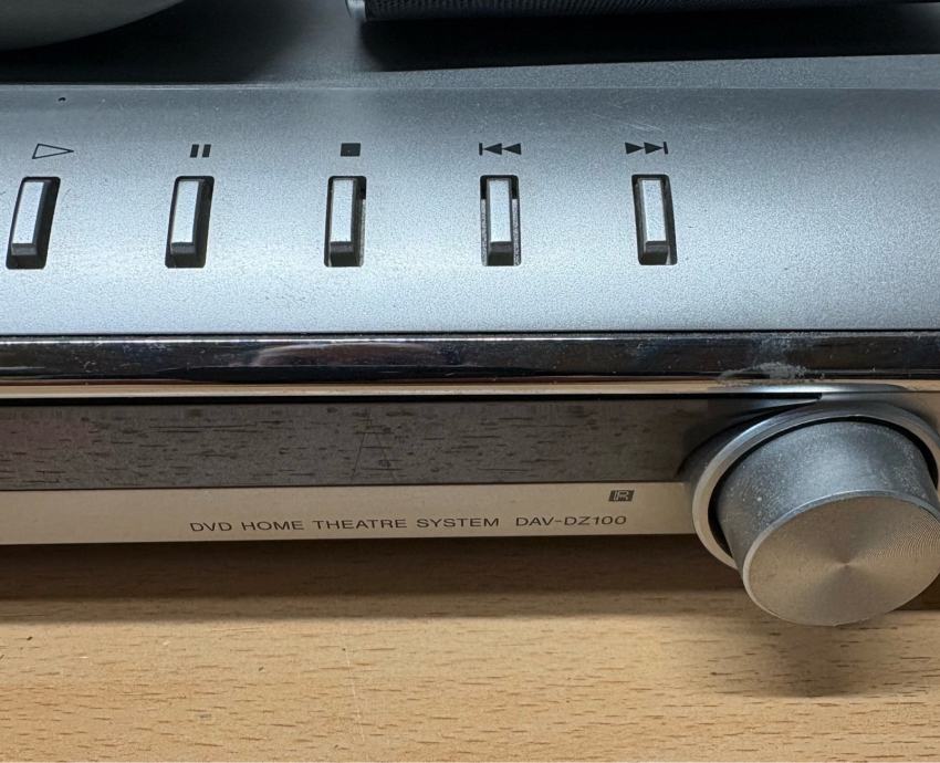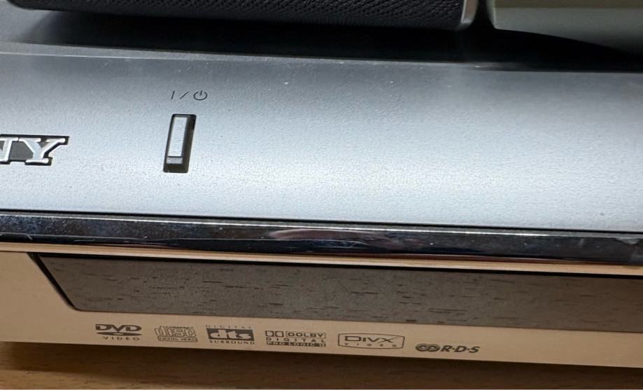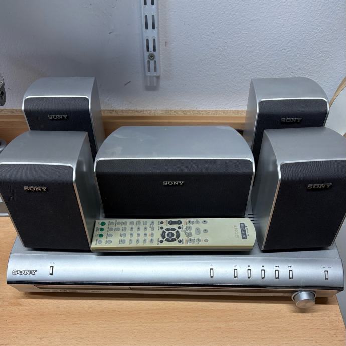 Prodajem rabljeni Sony DAV-DZ100 sustav kućnog kina s pet zvučnika i daljinskim upravljačem. Uređaj ima integrirani DVD player, podržava Dolby Digital i DTS formate, te je kompatibilan s raznim medijima. Kompaktni dizajn sa srebrnim detaljima idealan je za svaki dnevni boravak i pruža kvalitetan zvučni doživljaj.