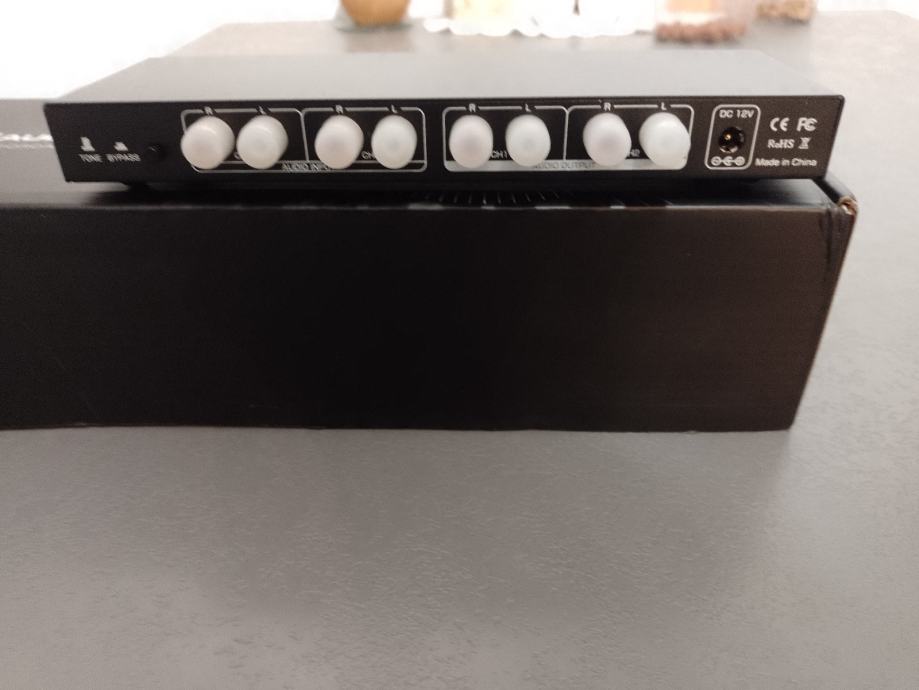 9 pojasni grafički equalizer sa regulacijom +-6dB na 20Hz,60Hz,125Hz,250Hz,500Hz,1kHz,2kHz,6kHz,16 kHz, 2 RCA ulaza i 2 izlaza.