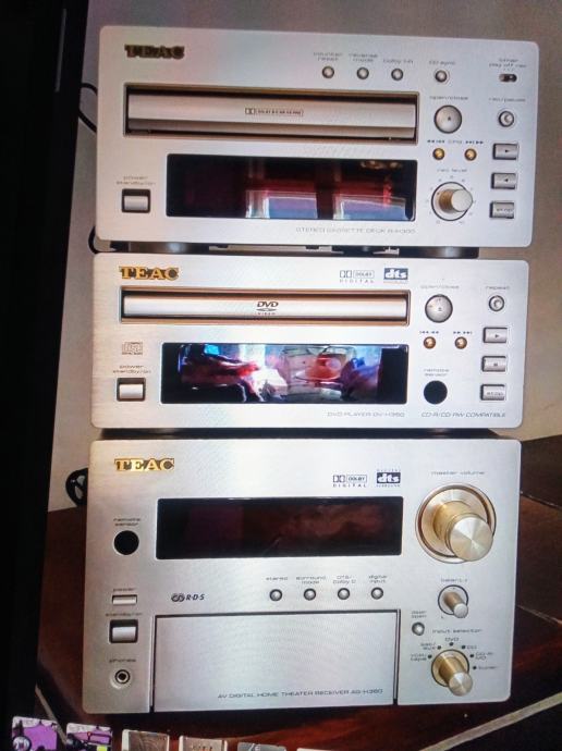 TEAC av digital theater receiver AG H350s orginal daljinskim i DVD CD player DV H350 sa daljinskim i kazetofon R H300.Komponente su ispravne i u savršernom stanju.Uz liniju poklanjam aktivni subwoofer Kanton AS22SC,70/120w,dimenzije 38×25×42 cm,težine 11,8 kg.,i zvučnici Kenwood IS-NV701,dvosistemski cone woofer,dimenzije 35,5×17×25 cm težine 5,6kg.