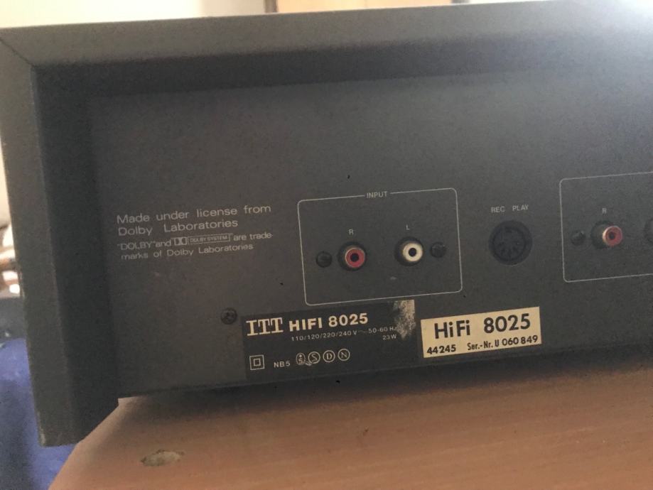 Itt 8025 kazetofon njemacke proizvodnje iz osamdesetih godina.Vrhunski kazic sa tri glave.Fluorescentni ekran.Veoma tezak.Oko 12 kg.Te linije i kazetofone su radili u suradnji sa Mitsubishijem.Odlicna kvaliteta.