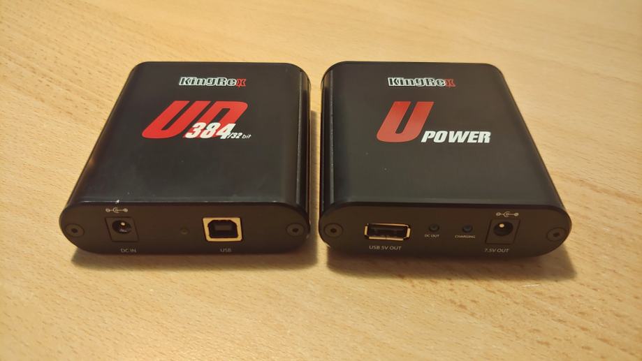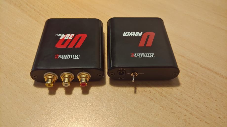Prodajem vrlo kvalitetan usb dac "Kingrex UD 384" isa pripadajucim baterijskim napajanjem "U Power" ( trebalo bi obnoviti bateriju. Traje oko 3 sata nakon punjenja.) Dac ima naravno i originalni strujni adapter za slušanje na 220v. Cijena 150 eur. Vise informacija na http://www.audiopuls.hr/testovi/king_rex_ud384/review.html