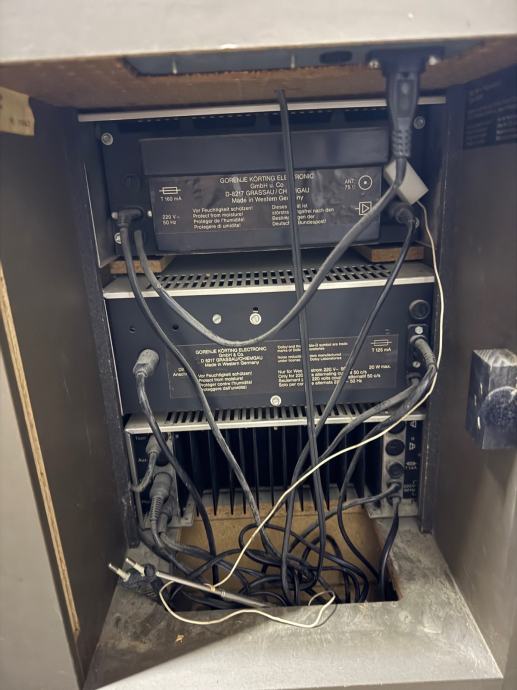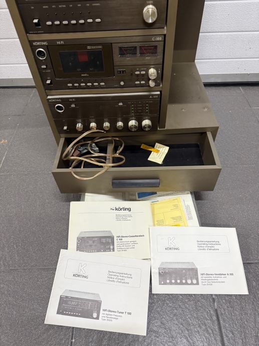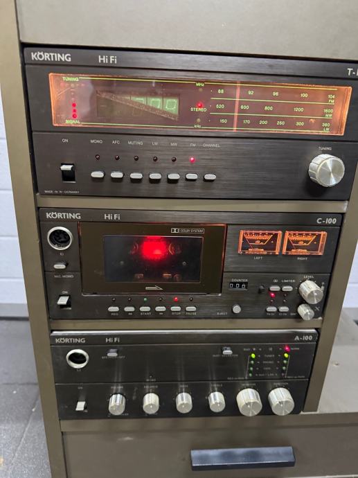 Prodajem kompletnu Korting Hi-Fi toranj stolnu kombinaciju koja obuhvaća tuner, kasetofon i pojačalo s equalizerom. Svi uređaji su smješteni u drveno kućište koje dolazi s dodatnom ladicom za pohranu. Sustav je potpuno funkcionalan, s odgovarajućim kablovima za povezivanje komponenti.