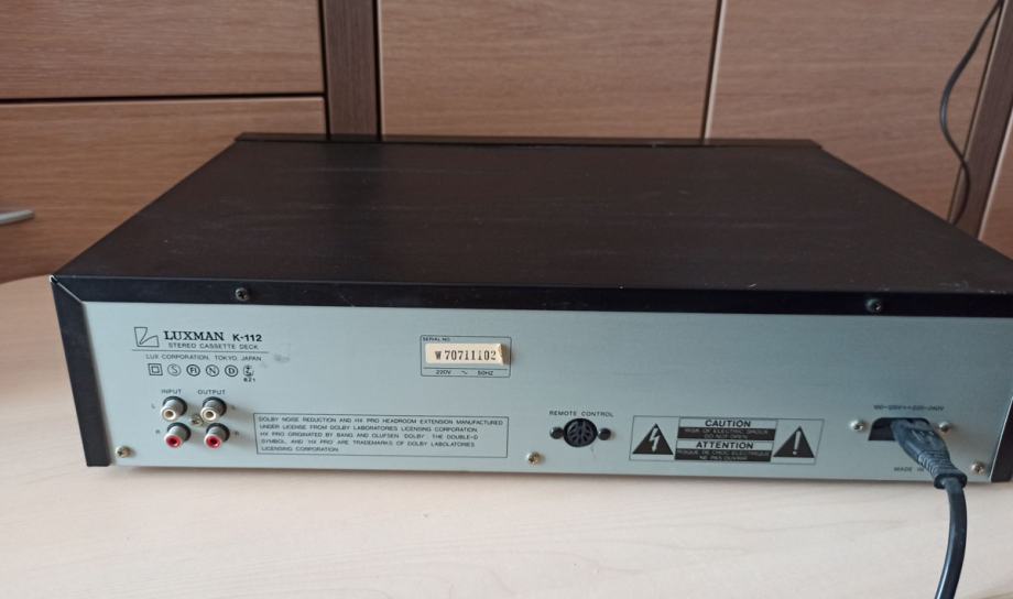 Luxman K-112 deck 3 glave, dolby B/C, odlično snima i svira. Može zamjena za deck iste cjenovne klase ili za ispravan gramofon. Record mute gumb ne radi ostalo sve ispravno.