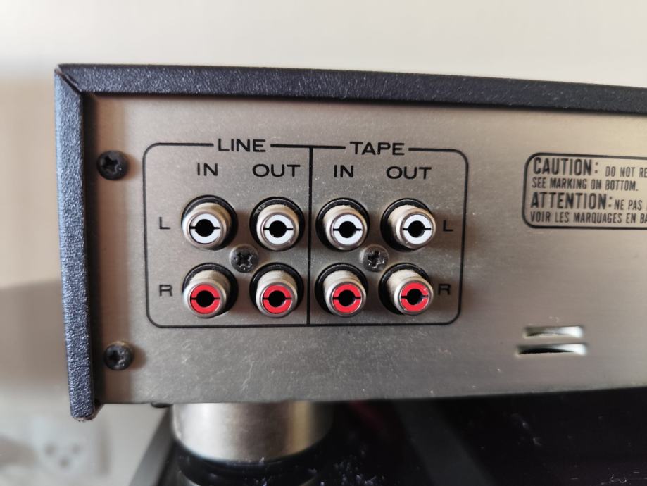 A 2 x 10 frequency band graphic equalizer (one per channel) with 12dB cut or boost per band and a 10 band fluorescent display, built-in pink-noise generator and supplied microphone. Jack for microphone, RCA phono sockets for input/output Line and Tape.