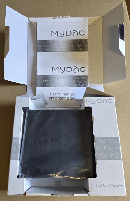 MyDAC digitalni audio konverter u svojem malenom, elegantnom i dizajnerskom ABS kućištu (dimenzija 140 x 140 x 35 mm i mase 300 grama) koje je konstruirano tako da spriječi nepoželjne elektromagnetske utjecaje i interferencije, a može biti crne ili bijele boje, donosi najnapredniju tehnologiju kada su u pitanju suvremeni (Hi-Res) DAC-ovi. USB sučelje funkcionira u asinkronom modu i prihvaća digitalni audio signal sve do 192 kHz/24 bit formata, a to podržavaju i po jedan koaksijalni i optički digitalni ulazi koji su na raspolaganju. Upotrebljen je provjereni Cirrus Logic CS4351 DA čip. Nepoželjni jitter reduciran je na najmanju moguću mjeru primjenom dva vrlo precizna generatora takta (tzv. master clocka) s pripadajućim niskošumnim napajanjima. Jedan je zadužen za grupu frekvencija baze 44,1 kHz (88,2 kHz i 176,4 kHz), a drugi za grupu frekvencija baze 48 kHz (96 kHz i 192 kHz). U ekstremno brzom i niskošumnom, te za ovaj uređaj posebno dizajniranom vanjskom napajanju (što je presedan u ovoj klasi), kao i na putu audio signala izbjegnuti su kritični elektrolitski kondenzatori. Također su u potpunosti odijeljena i zasebno dizajnirana napajanja digitalne sekcije i preostale elektronike. Promišljena topologija uz izostanak povratne veze na putu audio signala rezultira vrijednošću jitter-a manjom od 50 pS što je izvanredan rezultat u apsolutnim razmjerima (mnogi proizvođači čak izbjegavaju davati taj podatak). Odnos signal/šum veći je od 110 dB, a THD iznosi 0,002.