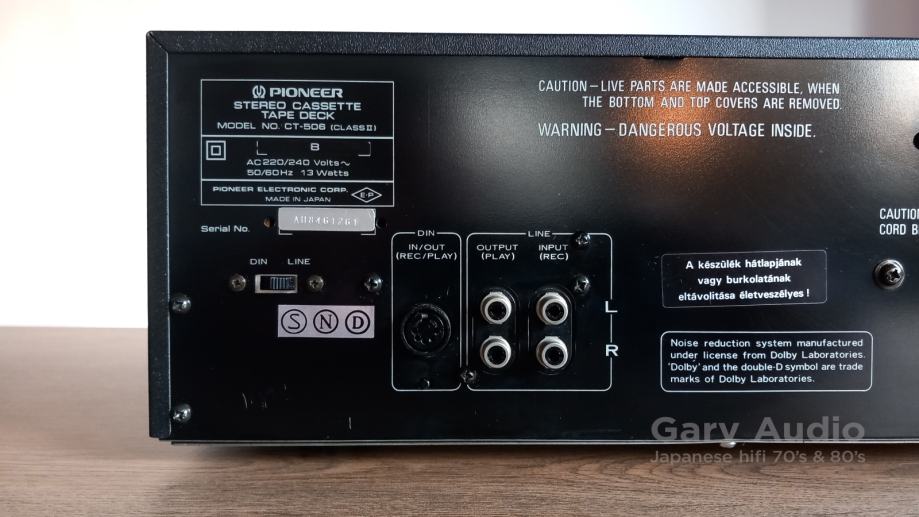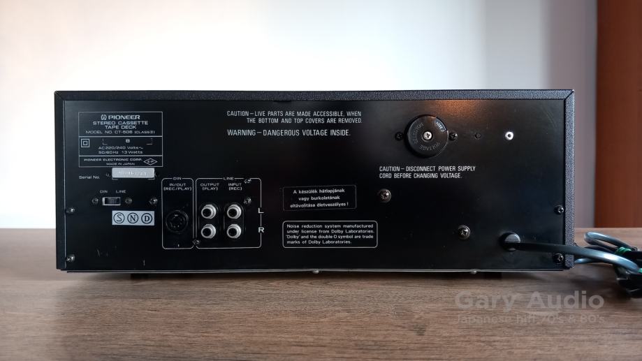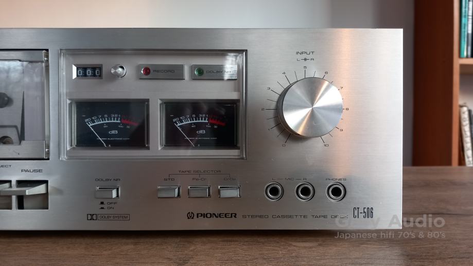 Pioneer CT-506 stereo kasetofon. Klasičan komad. Jednostavan, prekrasan. Srebrna ploča s fontom, karakterističan izgled. Pioneer CT-506 ima par velikih osvijetljenih VU-metara, birač vrste kasete i Dolby B smanjenje šuma. Uređaj je očišćen, potpuno restauriran, testiran i potpuno funkcionalan.