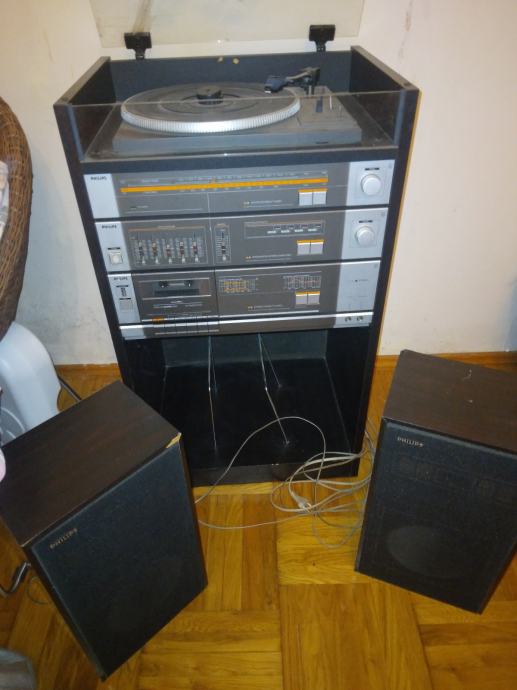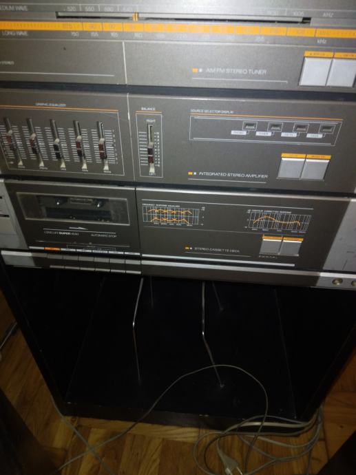 Muzički stup s radiom ,gramofonom ,kazetofonom i dva zvučnika.