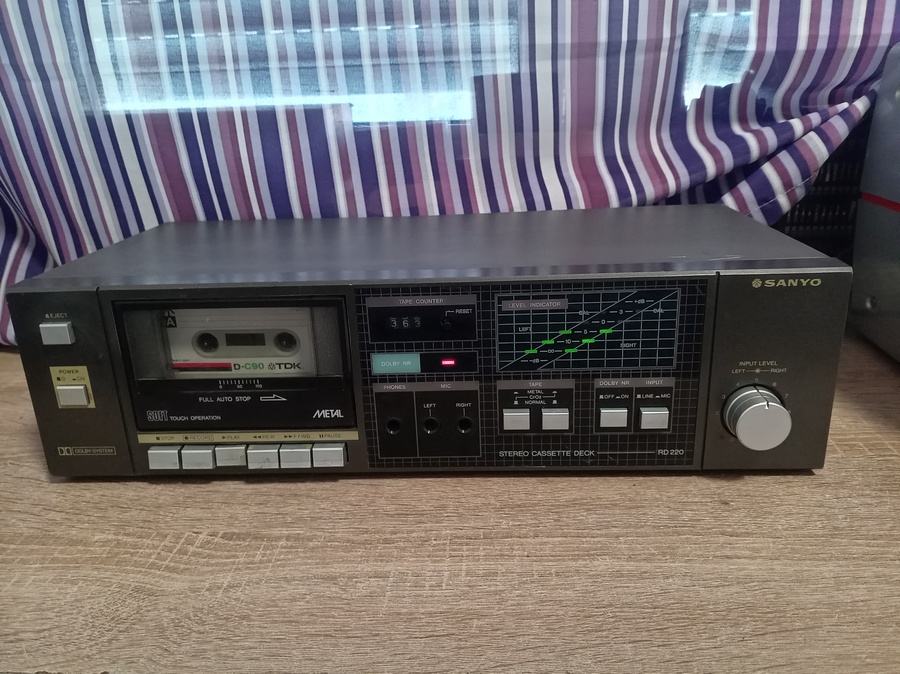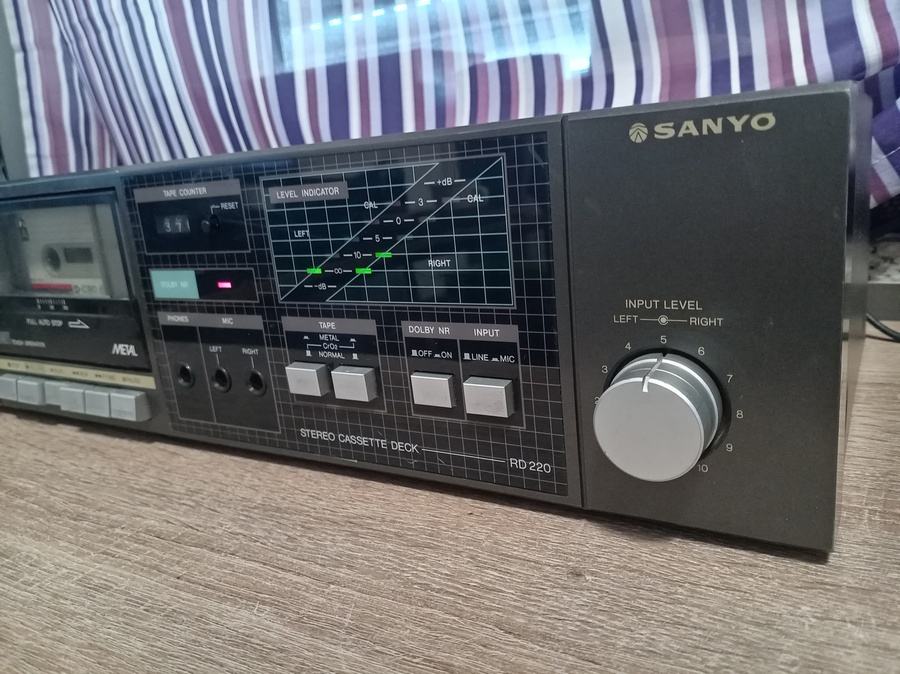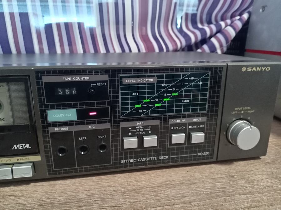 Prodajem lijepo očuvani ispravan kazetni deck Sanyo RD 220 , made in Japan , 84/85 , soft touch servo tipke , auto stop , dolby , metal , CrO2 , ulaz za slušalice , ulaz za mikrofon , brojač , beat on off , očišćen i promijenjene gumice , boja tamno srebrna , dužina 42 cm . tel : 099 4722848