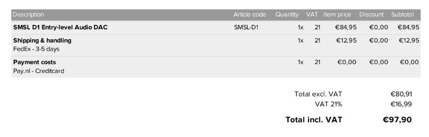 SMSL D1 je DAC temeljen na Rohm BD34352EKV čipu. Drugačiji zvuk od AKM i ESS rješenja u cjenovnoj kategoriji. Malo veći volumen basa, fokus na sredinu i mali roll off u visokima, koherentan zvuk, solidan stage. Ugodan za dulja slušanja. Praktično novi DAC.