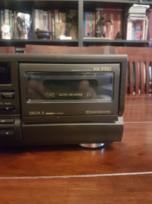 Potpuno ispravan dupli autoreversni deck,dolby B,C NR,HX PRO,,sa motornim otvaranjem i zatvaranjem vrata,mogucnošcu upravljanja putem daljinskog upravljaca,vrlo malo korišten,može se čuti prilikom kupnje,moje fotografije.