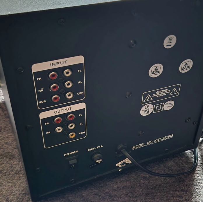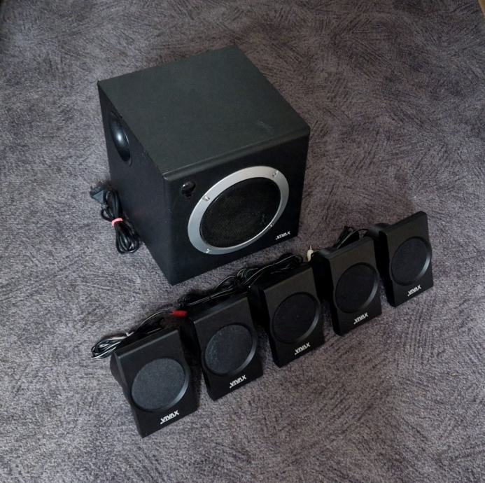 Bio je spojen na DVD player s kojim je došao. Može se spojiti na 5.1 pojačalo, TV itd..