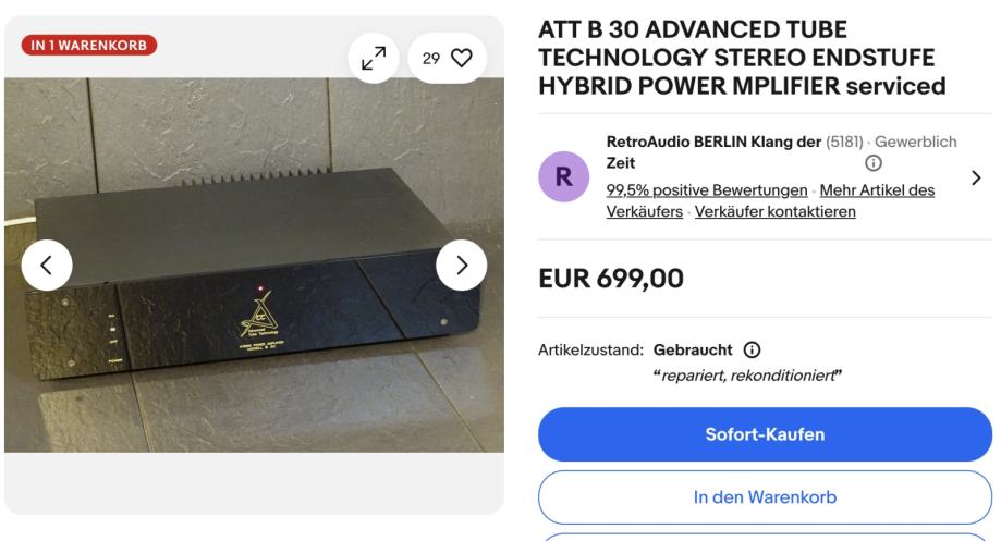 Vrlo rijetko, referentno, ručno sastavljeno u manufakturi Advanced Tube Technology, tehnički i vizualno besprijekorno, s blagim znakovima korištenja, obavljen kontrolni servis, vrhunski zvuk, stanje pogledajte na fotografijama. Dvije su sa neta..