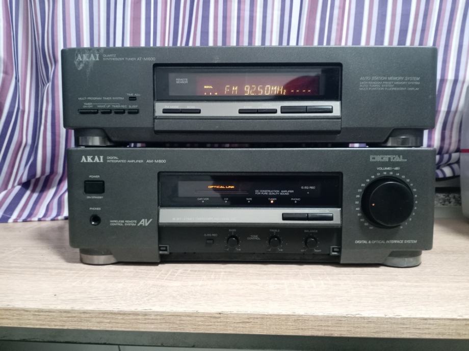 Prodajem ispravno stereo pojačalo AKAI AM-M600 , odličnih 2x35w , phono ulaz , tuner , cd , tape , dat . Pojačalo je težine oko 6,5 kg , dimenzije : 36 x 18 x 31 cm . Uz pojačalo dolazi i odličan tuner AT M600 , koji se spaja na pojačalo sistemskim kablom . Pojačalo može koristit i druge tunere i komponente . Cijena za komplet pojačalo sa tunerom . tel : 099 4722848