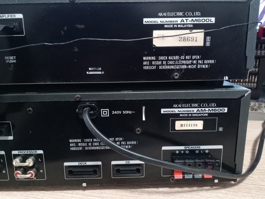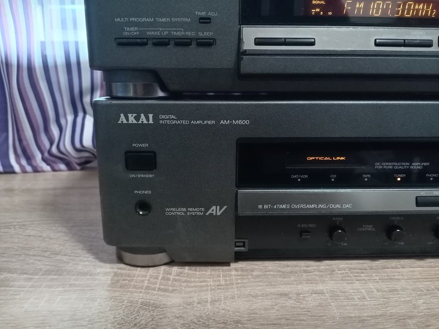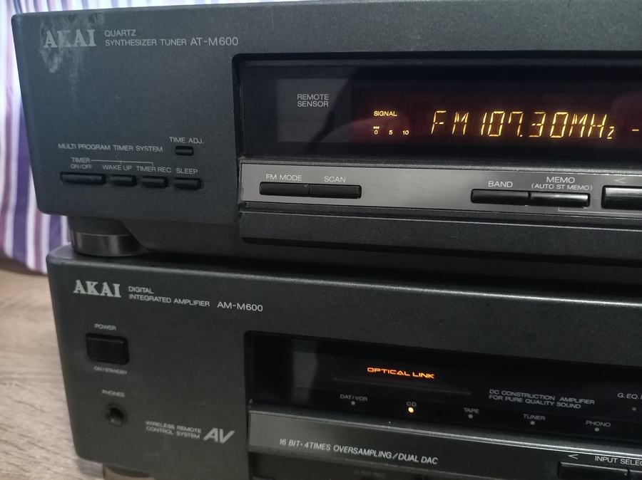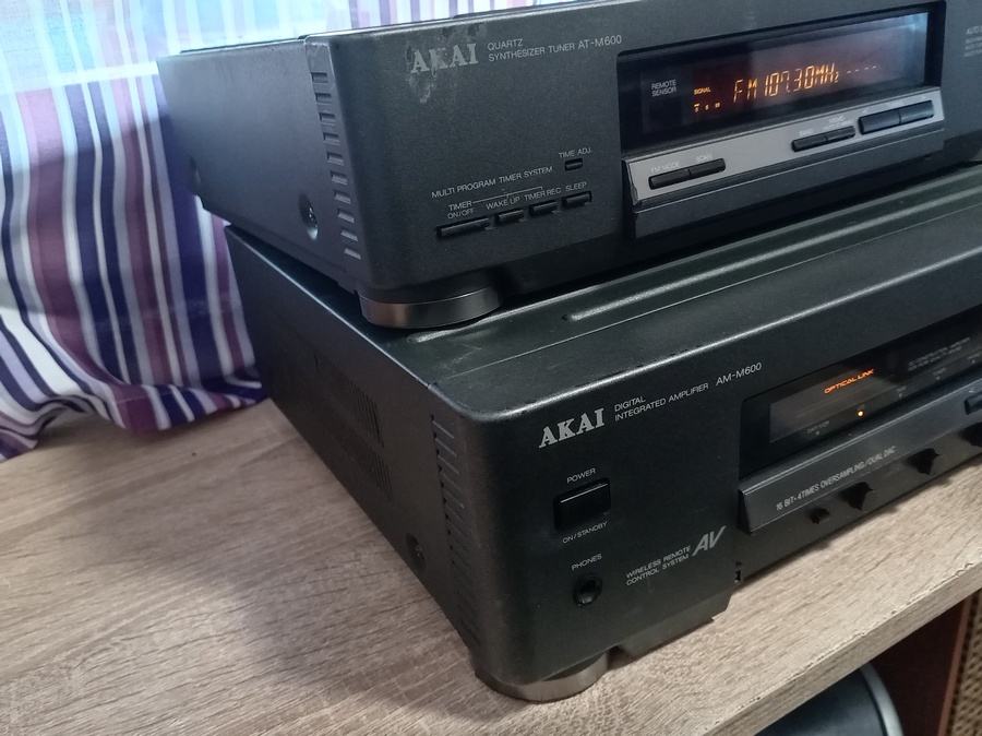 Prodajem ispravno stereo pojačalo AKAI AM-M600 , odličnih 2x35w , phono ulaz , tuner , cd , tape , dat . Pojačalo je težine oko 6,5 kg , dimenzije : 36 x 18 x 31 cm . Uz pojačalo dolazi i odličan tuner AT M600 , koji se spaja na pojačalo sistemskim kablom . Pojačalo je samostalno i može koristit i druge tunere i komponente . Cijena za komplet pojačalo sa tunerom . tel : 099 4722848