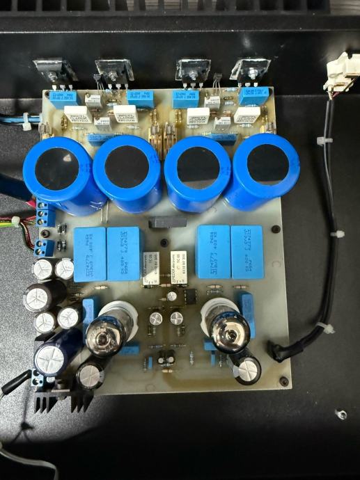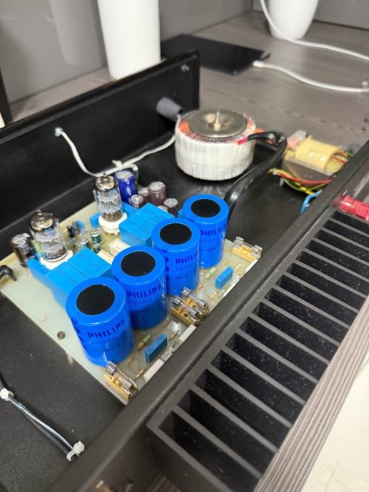 Hibrid u mint stanju, 2x70w, mos fet sa dvije ECC 81...bias u A klasi....jako lijepo napravljeno sa probranim dijelovima....pojačalo je zvučno perfektno sa definiranim i dubokim bas dionicama te otvorenom i detaljnom zvučnom slikom, nema tragova sibilanata i neugodnih artifekata....jako dobro svira i sa pasivnim predpojačalima.