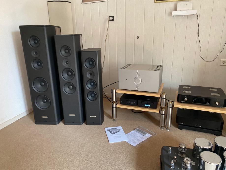 Zero Global feedback circuit designed by Airtech(SeGeSTA configuration) All stages fully balanced, dual-mono configuration and discrete components circuits Power stage with 12 bipolar transistors per channel, 81600?F filter capacity per channel Oversized military resistors to minimize thermal distortion Audiograde components, microcontroller management.