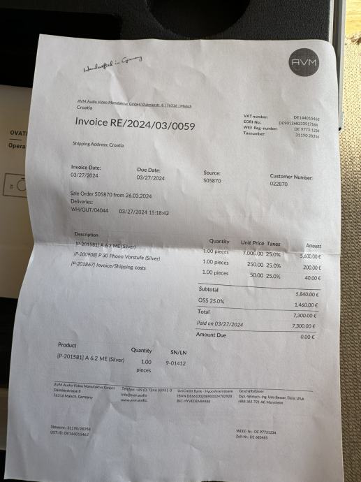 Prodajen AVM A6.2 ME pojačalo.